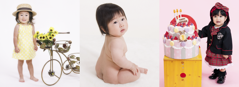 初めての誕生日は大切な記念日。初誕生祝いは一升餅(一生餅・誕生祝い餅)をお子様に背負わす行事があります。人間の一生と餅の一升をなぞらえて、一生(一升)食べるに困らないように、一生(一升)健康に育つようになどの願いを込めて、1歳まで成長したことを祝う伝統的な行事です。生まれてから毎年誕生日に記念写真を残すと成長の記録を残すことができます。